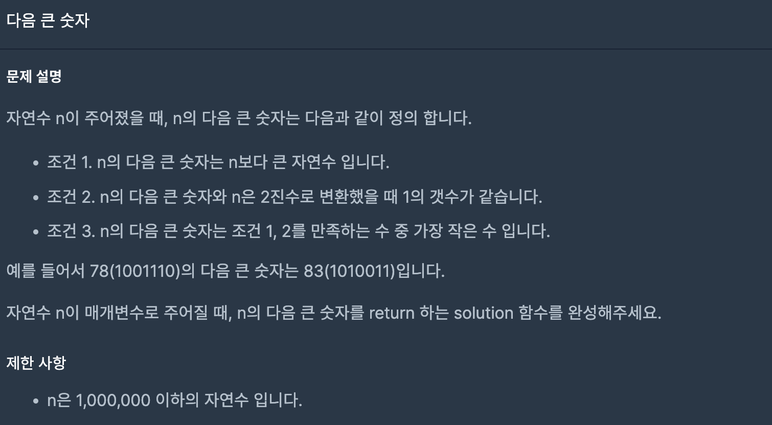 break; // 주어진 숫자와 비트카운트가 같은 n보다 큰 가장 작은 자연수